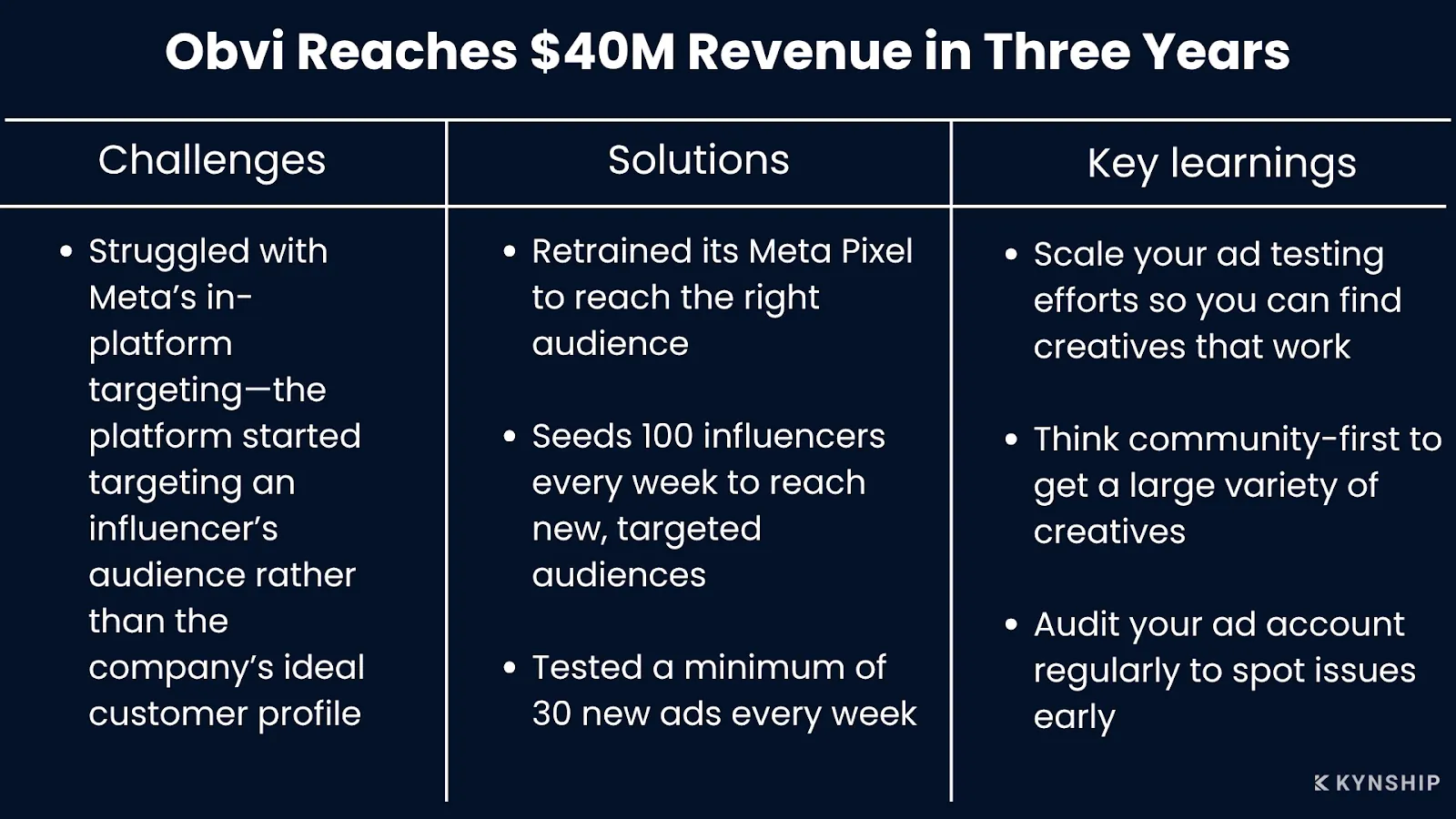 Here’s Kynship’s strategy to overcome all these obstacles, after working with the brand for over three years: